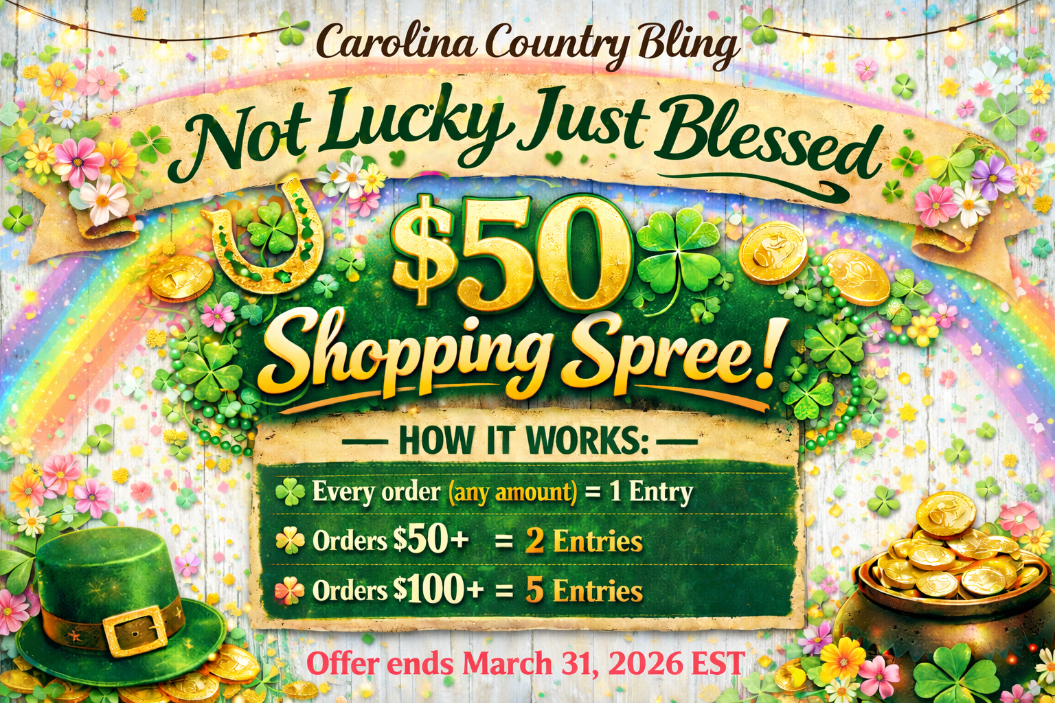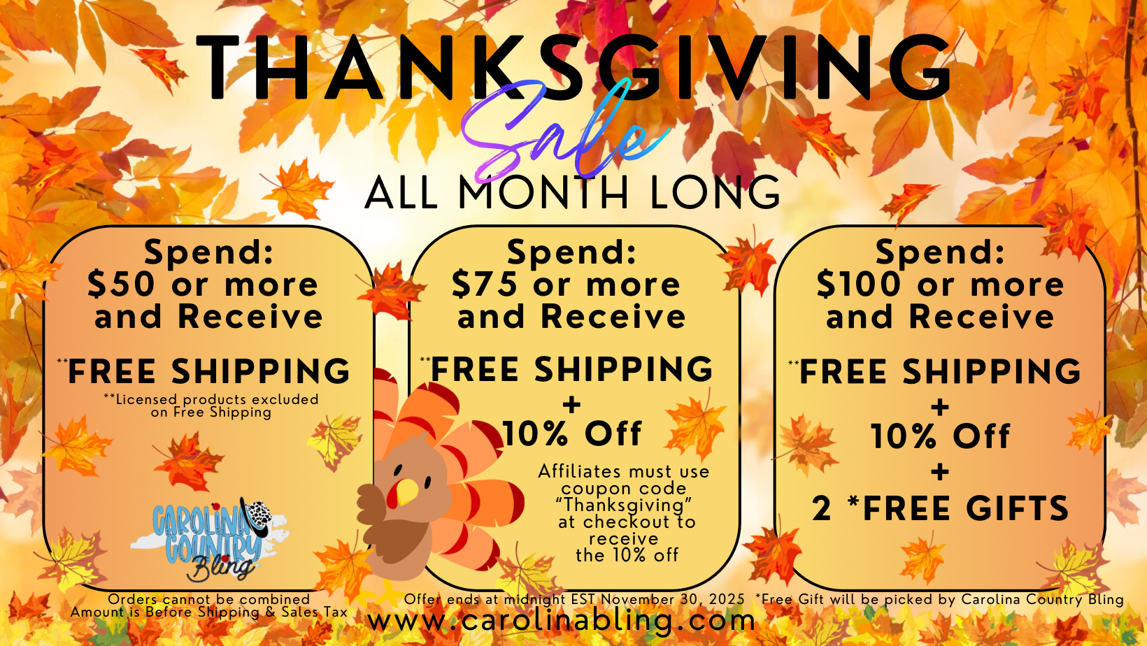 We promise to treat our customers with the honesty and respect they deserve and to give you the best affordable jewelry and accessories around. We hope you will be a part of our Carolina Country Bling family for many years to come.